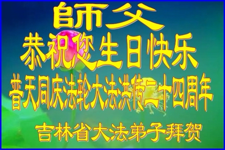 师父:恭祝您生日快乐! 普天同庆法轮大法或者二十四周年 吉林省大法弟子拜贺