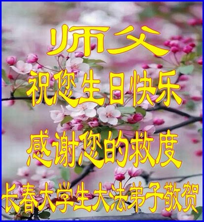 师父:恭祝您生日快乐! 普天同庆法轮大法或者二十四周年 长春大学生大法弟子敬贺