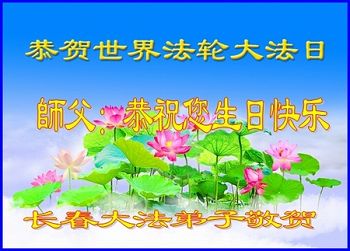 恭贺世界法轮大法日! 师父:恭祝您生日快乐! 长春大法弟子敬贺