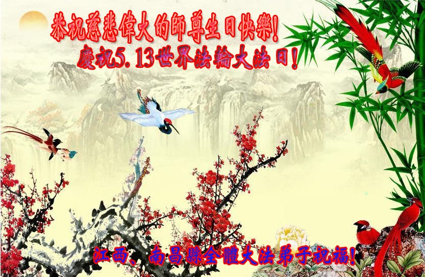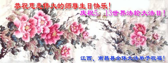 恭祝伟大慈悲的师尊生日快乐!庆贺5.13世界法轮大法日好! 江西南昌县全体大法弟子恭祝伟大慈悲的师尊生日快乐!庆贺5.13世界法轮大法日