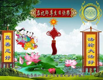 江西南昌市青云谱区一学法小组大法弟子祝师尊生日快乐!