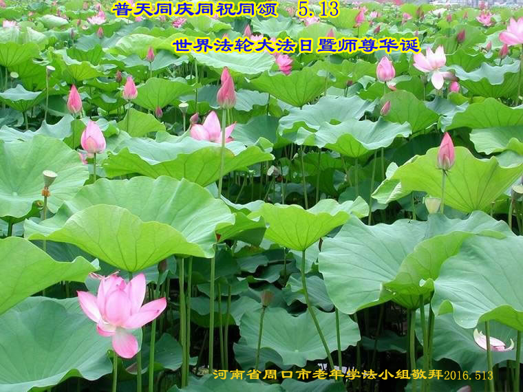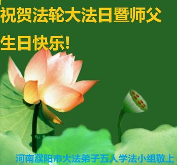 大法洪传 苍宇之福 值此第十七届“世界法轮大法日”到来之际,河南省禹州市全体大法弟子恭祝伟大的师尊生日快乐!五月的感恩,永远的祝颂。用尽全人类的语言也无法表达我们对伟大师尊的感恩,唯有精進实修,多学法多救人,完成史前大愿,才能让师尊少一份操心,多一份欣慰。 师父,请您放心,我们一定信师信法,正念正行,遇事向内找。在任何环境中都表现出大法弟子应有的风采,感化世人,救度众生。 再次叩拜师尊,恭颂师尊六十五岁华诞! 河南省禹州市全体大法弟子 河南省濮阳学法小组庆祝五一三法轮大法日!恭祝慈悲伟大的师尊生日快乐!