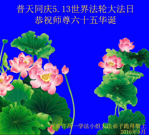 河南许昌县全体大法弟子恭贺世界法轮大法日暨师尊六十五岁华诞!