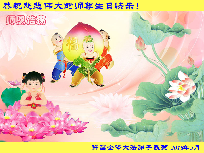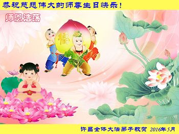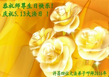 【明慧网二零一六年五月十三日】 河南周口一家大法弟子祝师父生日快乐!