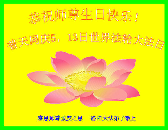 河南洛阳大法弟子恭祝慈悲伟大的师尊华诞!普天同庆5.13日世界法轮大法日!感恩师尊佛恩浩荡沐浴众生!