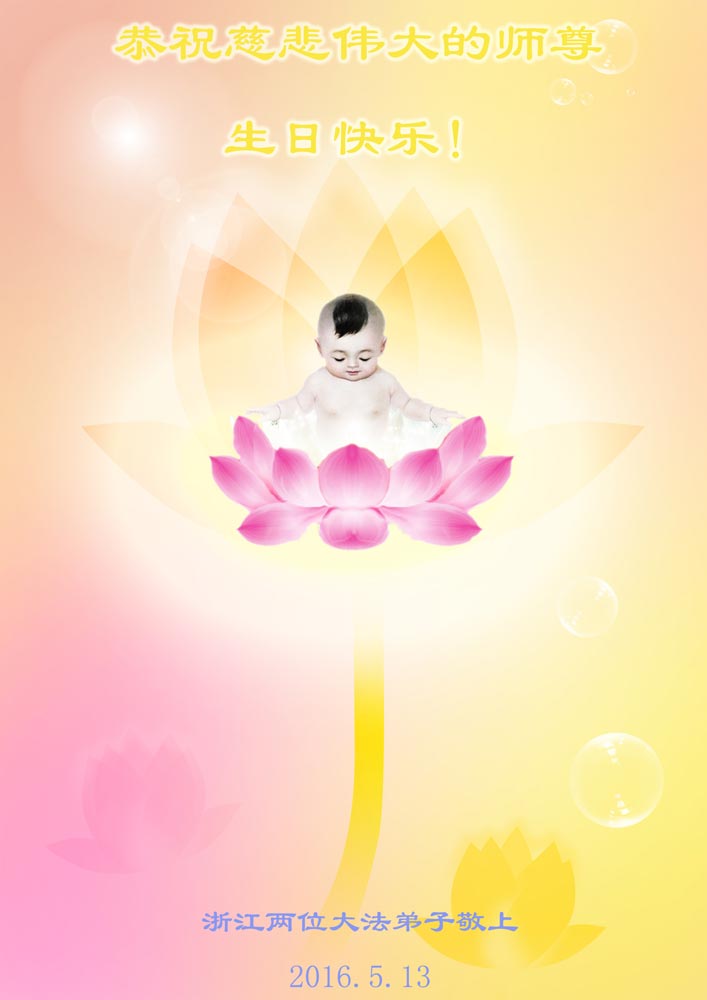 浙江两位大法弟子恭祝慈悲伟大的师尊生日快乐!
