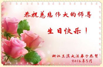 【明慧网二零一六年五月十三日】 浙江兰溪大法弟子恭贺法轮大法日!恭祝师尊生日快乐!
