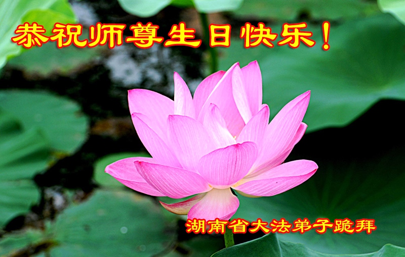 感谢师尊对弟子的不离不弃,一定珍惜这万古修炼机缘,不辜负师尊的慈悲苦度,努力做好三件事,配合好整体,多救人。逐步改变人的观念,包括自己的一思一念,一言一行,真正做到实修,跪拜合十 湖南常德市全体大法弟子恭祝师尊生日快乐!恭贺世界法轮大法日!