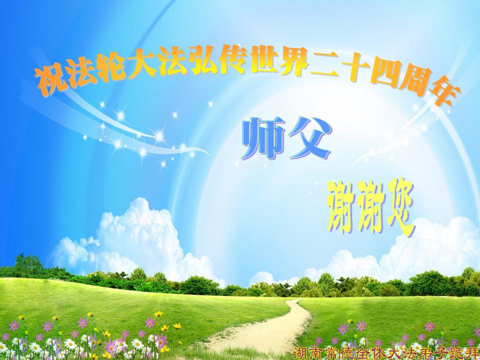 庆祝法轮大法洪传二十四周年! 纵有妙笔难书师恩,千言万语汇成一句:唯愿最最慈悲伟大的师尊生日快乐! 湖南常德市学法小组大法弟子恭祝师尊生日快乐!恭贺世界法轮大法日!