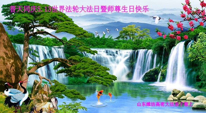 山东省潍坊市高密一大法弟子携家人一家四口恭祝! 昌邑南乡一老年大法弟子恭祝! 高密大法弟子兄妹二人恭祝! 山东省潍坊青州市全体大法弟子恭祝师尊生日快乐!同贺法轮大法洪传二十四周年!