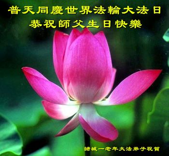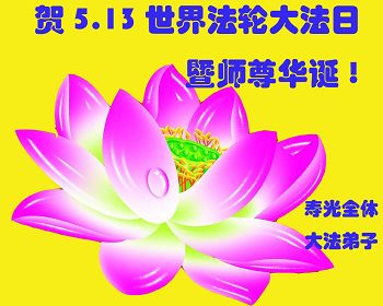 恭祝师尊洪传大法二十四周年,弟子感激师尊慈悲救度,一定精進实修,紧跟师尊正法進程,做好三件事,让师父少一些操心,多一些欣慰。 山东潍坊商业界大法弟子恭祝师尊生日快乐!普天同庆世界法轮大法日!