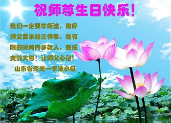 山东省潍坊大法弟子祝慈悲伟大的师尊生日快乐!