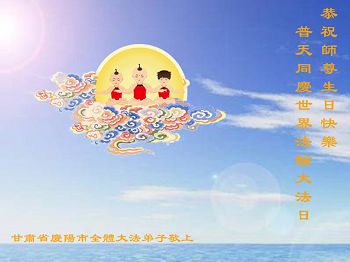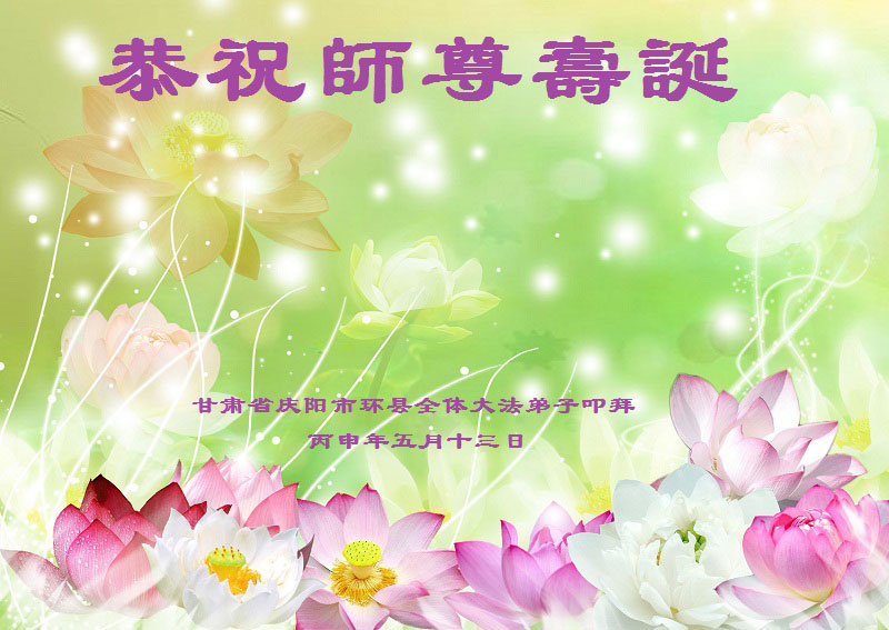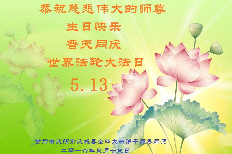 甘肃省庆阳市全体大法弟子普天同庆世界法轮大法日!恭祝师尊生日快乐!