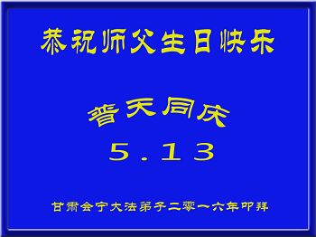 【明慧网二零一六年五月十三日】 甘肃会宁大法弟子恭祝师父生日快乐!