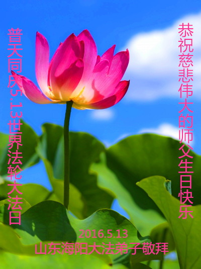 山东省烟台市海阳市农村大法弟子恭祝师尊生日快乐!普天同庆5.13世界法轮大法日!