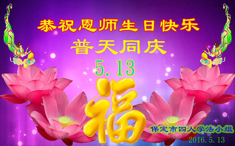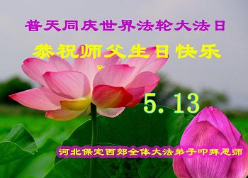 河北保定大法弟子恭贺5•13世界法轮大法日!恭祝师父生日快乐!