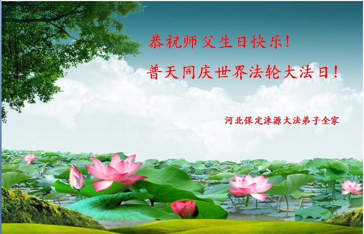 河北省保定市高阳县一大法弟子及全家恭祝慈悲伟大的师尊生日快乐!恭祝世界法轮大法日!