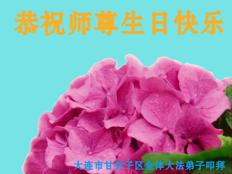 辽宁大连市甘井子区全体大法弟子恭祝师尊生日快乐!