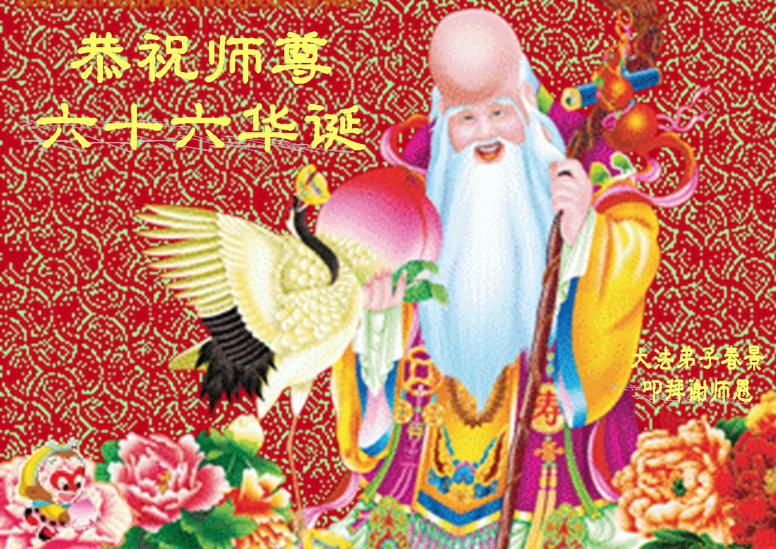 在这普天同庆的时刻,我们以无比激动心情向慈悲伟大的师尊道一声:师父您辛苦了!弟子们感谢您!我们所有的一切都是师父与大法给予的。千言万语道不尽对师尊的感恩!我们会牢记师父的谆谆教诲,不断的归正自己,洗净自己,同时多救众生,跟师父回家! 大连泡崖学法小组全体大法弟子叩拜恩师 辽宁省大连大法弟子恭祝师尊生日快乐!