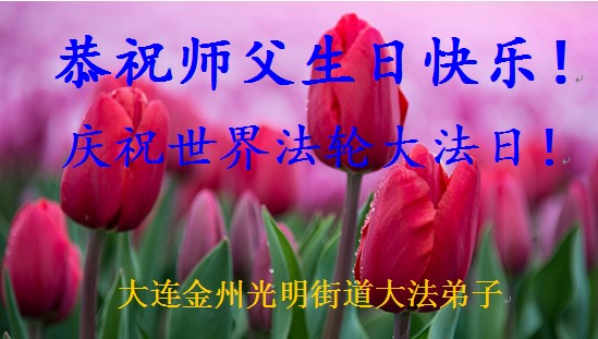 辽宁省大连大法弟子恭祝师尊生日快乐!与全球大法弟子同贺法轮大法日!