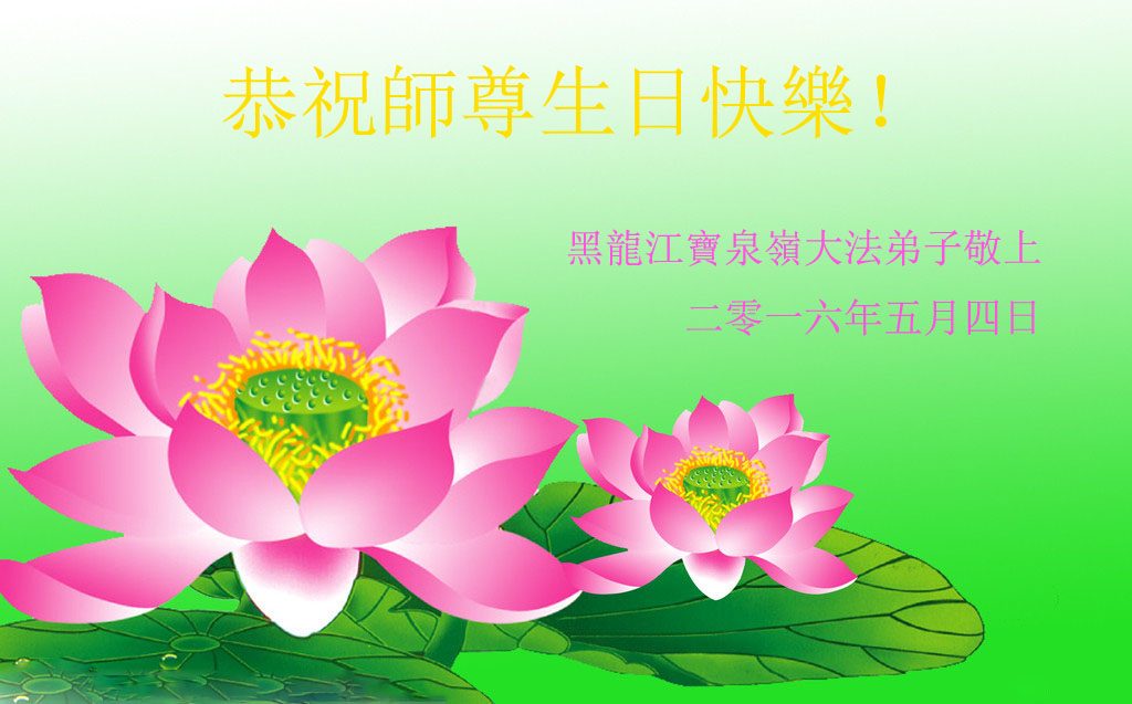 【明慧网二零一六年五月十三日】 黑龙江省佳木斯市桦川县四马架镇全体大法弟子恭祝师尊生日快乐!