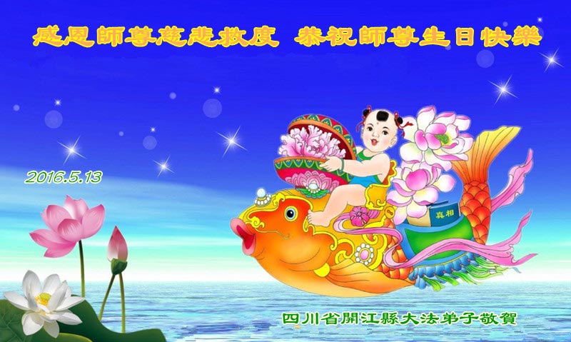 四川省达州市开江县大法弟子感恩师尊慈悲救度、恭祝师尊生日快乐!