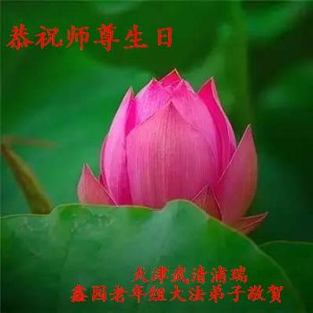 师尊华诞暨法轮大法洪传二十四周年! 师尊华诞暨法轮大法洪传二十四周年!普天同庆5.13世界法轮大法日! 五月十三日,人类历史上一个光辉的日子! 这一天,寰宇同庆; 这一天,普天感恩。 一九九二年五月十三日,从这一天开始,法轮佛法传遍了中国,传向了世界——从东方传到西方。这是每个生命都应该感恩的日子!我们不会忘记神的誓言,我们不会辜负师尊的期望!一如既往做好三件事,救度众生,肩负起重任,兑现我们与主佛签下神圣的誓言! 天津武清全体大法弟子向慈悲伟大师父叩拜! 天津武清浦瑞鑫园老年组大法弟子祝慈悲伟大的师尊生日快乐!