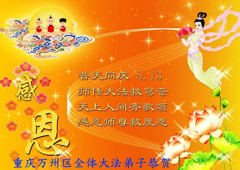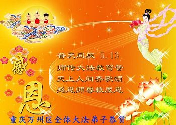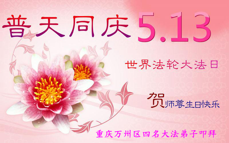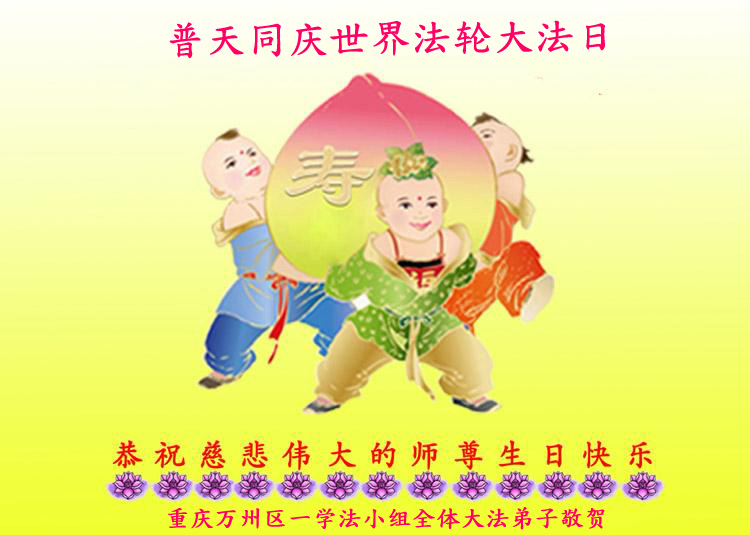 重庆万州区全体大法弟子恭祝师父生日快乐!普天同庆世界法轮大法日!