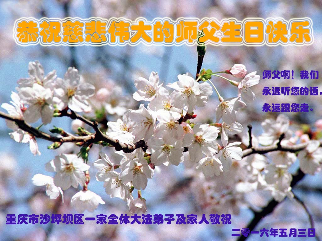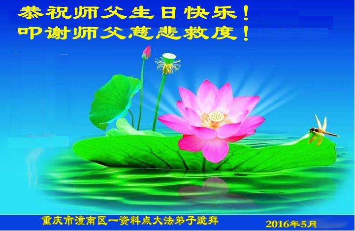 恭祝慈悲伟大的师尊生日快乐! 弟子感恩师尊的慈悲苦度!感谢师尊对身处魔难的弟子慈悲呵护! 重庆市潼南大法弟子恭祝师尊生日快乐!
