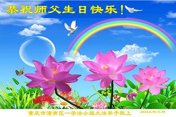 值此世界法轮大法日、师尊六十五华诞即将来临之际 天津蓟县大法弟子恭祝师尊生日快乐!恭贺5.13法轮大法日! 重庆市沙坪坝地区大法弟子恭祝师尊生日快乐!
