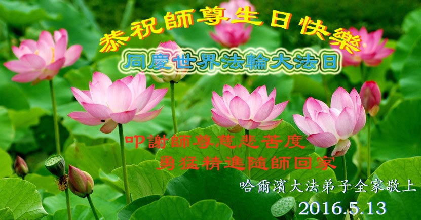 黑龙江省哈尔滨大法弟子全家恭祝师尊快乐!暨贺法轮大法日!