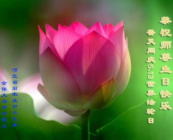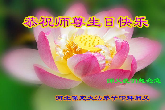 师尊您好! 师尊您辛苦了! 我们一定要遵照师尊的教诲做好三件事,跟上正法進程,不辜负师尊的期望,完成我们的来世大愿。 河北省石家庄大法弟子恭祝慈悲伟大的师尊生日快乐!