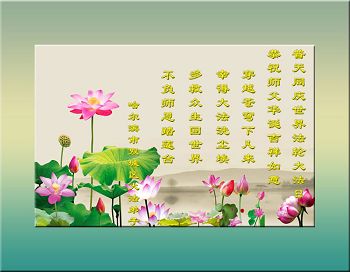 恭祝师父生日快乐! 金莲万朵法中升 正念正行救众生 弟子叩拜谢师恩 完成大愿随师还 河北涿州市大法弟子合十拜上 黑龙江省哈尔滨市大法弟子恭祝师父华诞吉祥如意!普天同庆世界法轮大法日!