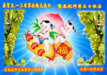 【明慧网二零一六年五月十三日】 河北石家庄市一学法小组恭贺世界法轮大法日