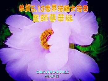 恭祝5.13世界法轮大法日! 恭祝师父生日快乐! 谢谢师父,师父辛苦了! 山东省青岛一学法小组大法弟子恭祝师尊生日快乐!