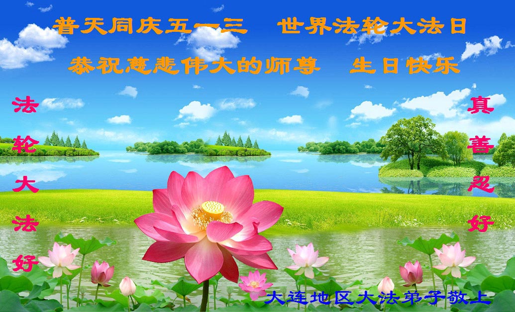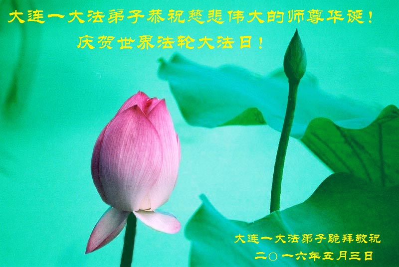 【明慧网二零一六年五月十三日】 辽宁省大连大法弟子恭贺师尊华诞暨世界法轮大法日!