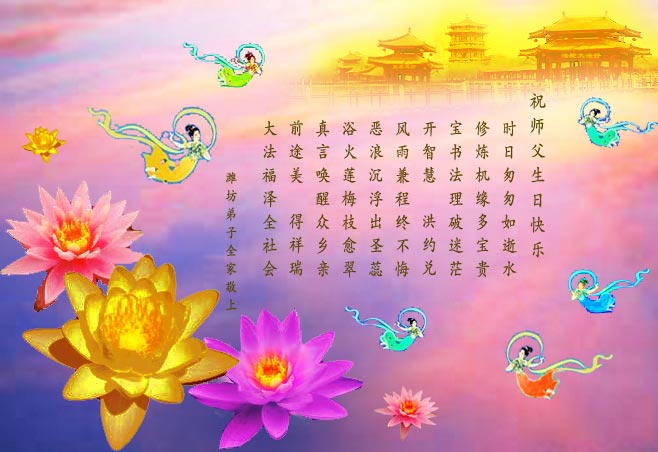 山东省潍坊大法弟子祝师父生日快乐!祝贺法轮大法日!