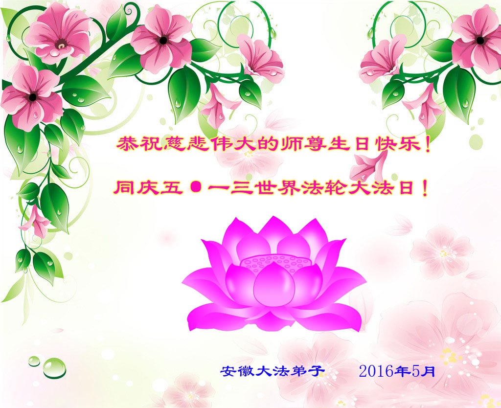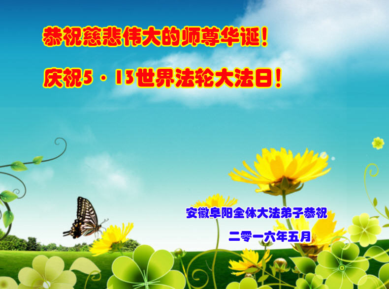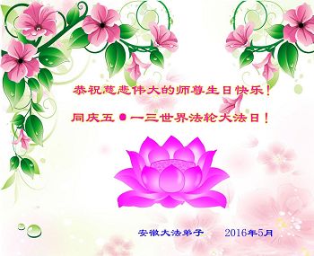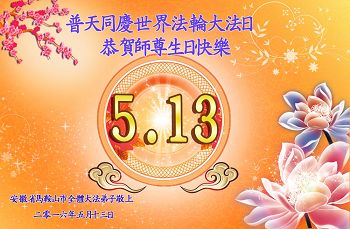 【明慧网二零一六年五月十三日】 安徽大法弟子恭祝师尊生日快乐!祝贺513世界法轮大法日!