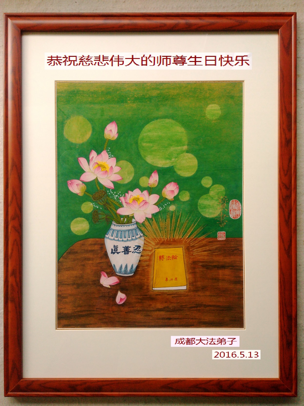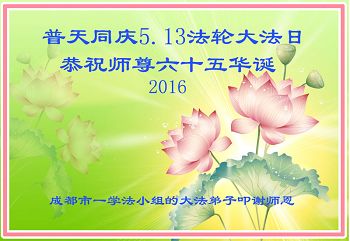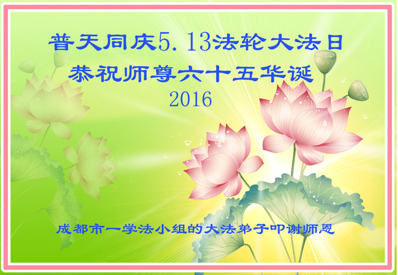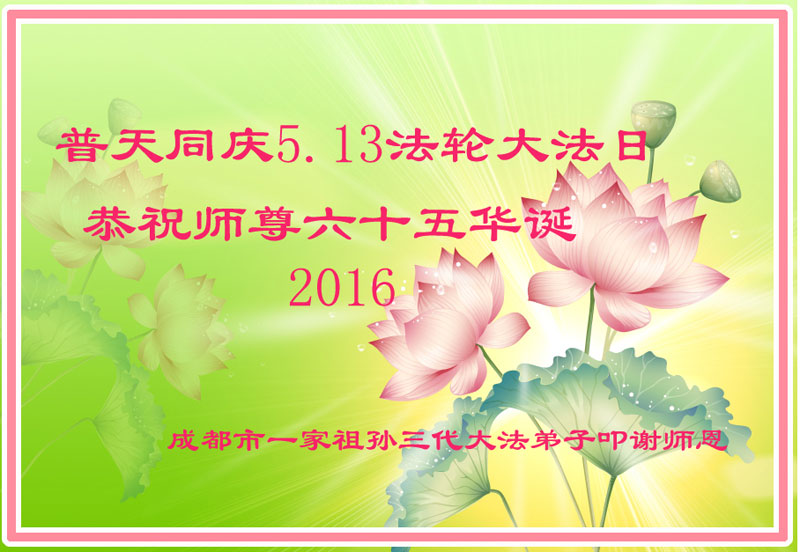 【明慧网二零一六年五月十三日】 四川省成都母女二人大法弟子恭祝师父生日快乐!庆祝513法轮大法日!