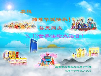 四川省成都市新都区大法弟子恭祝师尊华诞快乐!普天同庆5•13世界法轮大法日!
