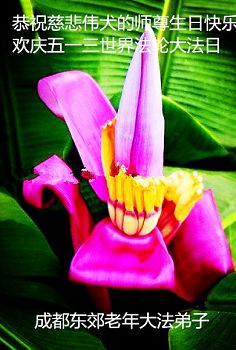 四川省成都市中国中铁二局大法弟子及一家三口恭祝师尊生日快乐! 恭祝法轮大法洪传世界二十四年! 四川省成都遍地花学法小组大法弟子恭祝慈悲伟大的师尊生日快乐!