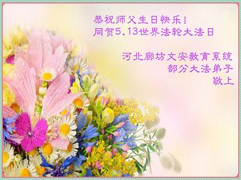 河北廊坊文安教育系统部份大法弟子恭祝师父生日快乐!同贺世界法轮大法日!