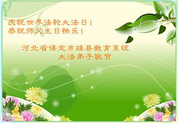 河北省保定市雄县教育系统大法弟子庆祝世界法轮大法日!恭祝师父生日快乐!