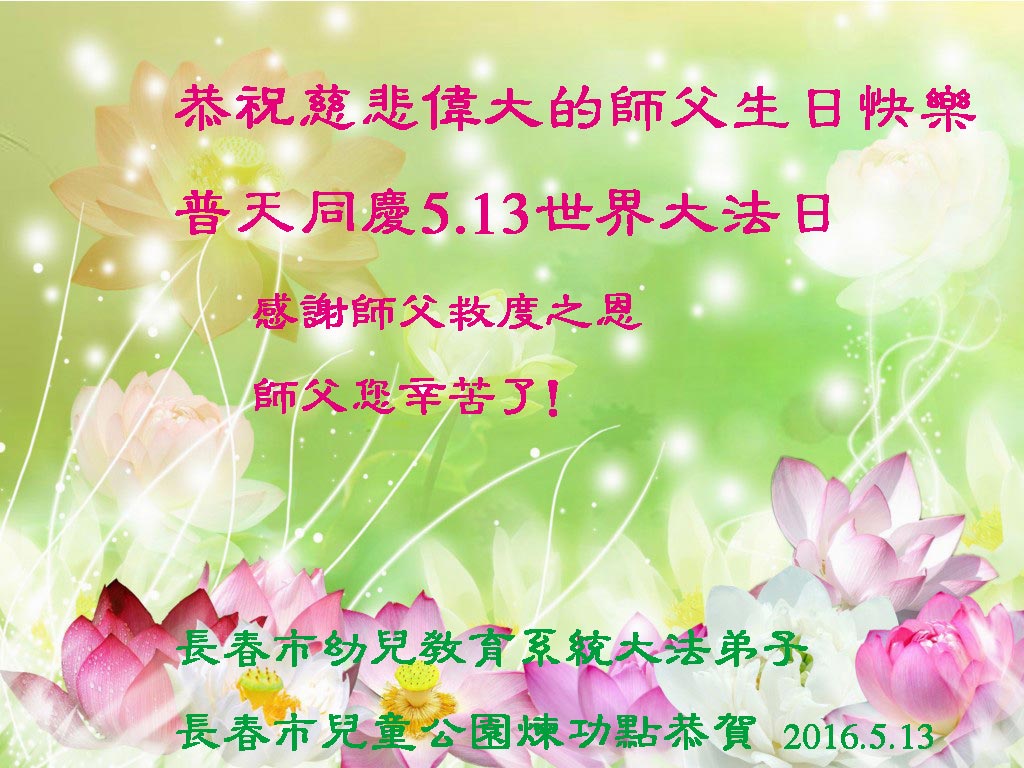 吉林省长春市幼儿教师大法弟子及全家恭祝师父华诞!恭祝5.13世界法轮大法日!