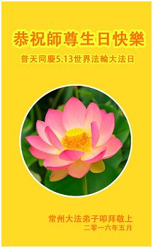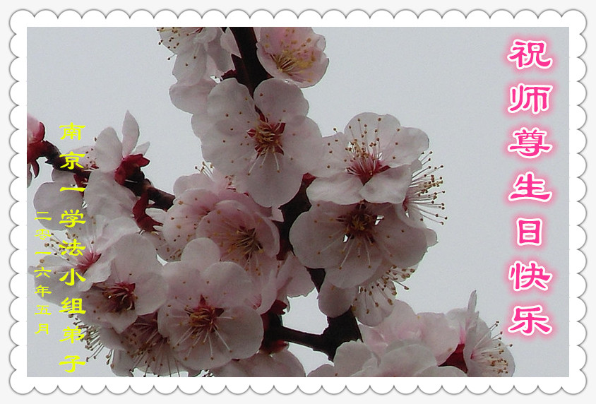 【明慧网二零一六年五月十三日】 江苏省南京一学法小组大法弟子祝师尊生日快乐!