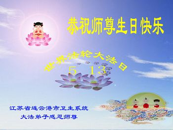 南京九人学法小组敬上 江苏省连云港市卫生系统大法弟子恭祝慈悲伟大的师父生日快乐!