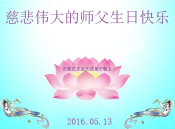 【明慧网二零一六年五月十三日】 河北石家庄市一学法小组大法弟子恭贺法轮大法日!