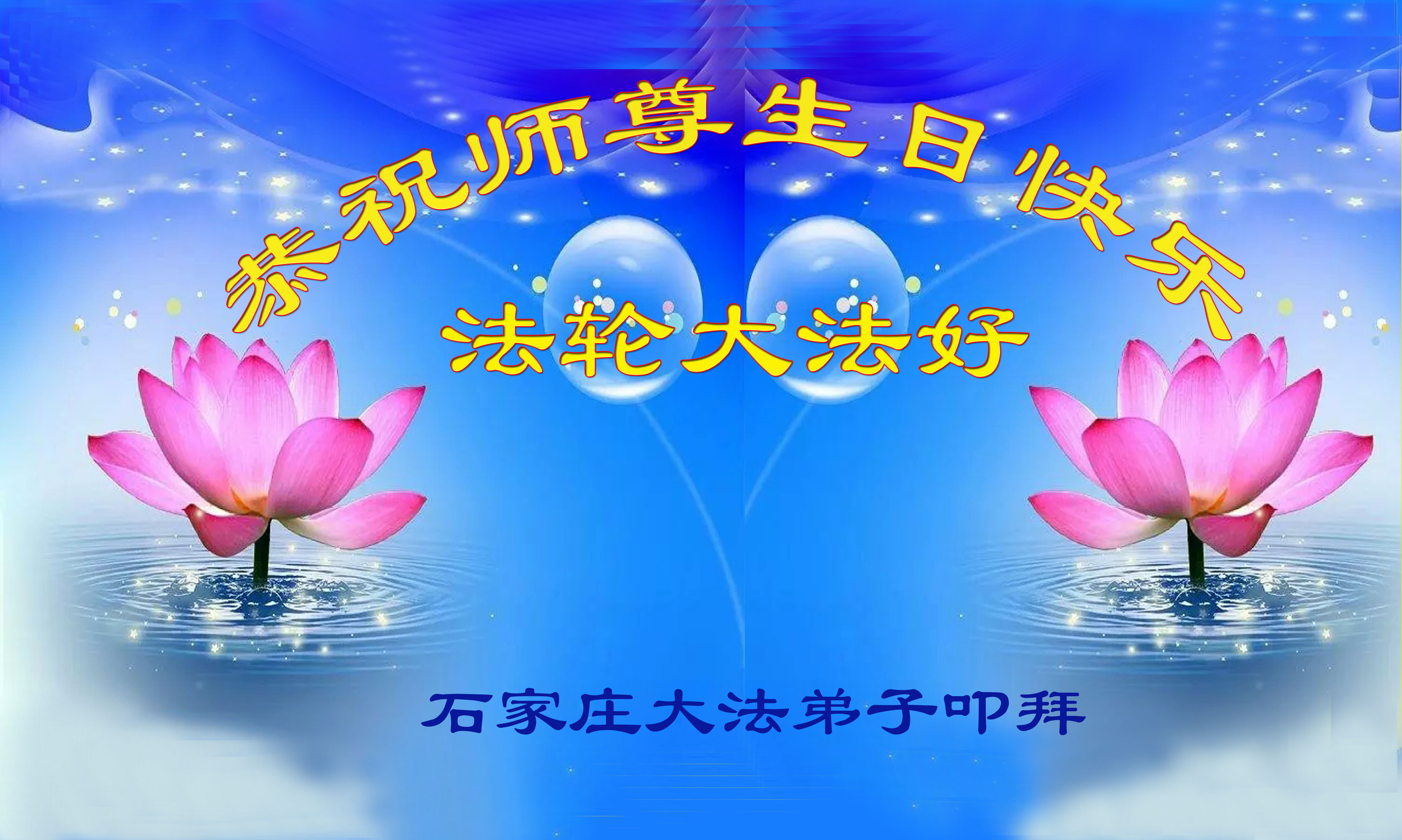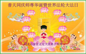 河北省石家庄大法弟子恭祝师父六十五华诞生日快乐!恭贺第十七届世界法轮大法日!