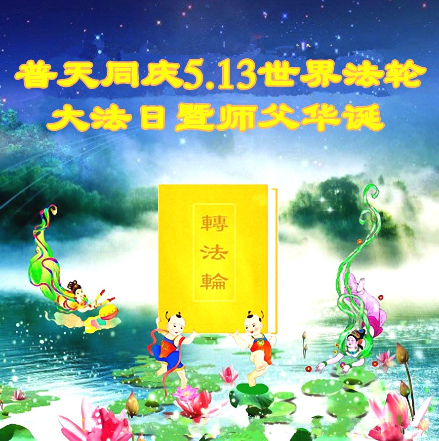 我们莱西市六人学法小组大法弟子恭贺法轮大法日并恭祝慈悲伟大的师父生日快乐! 我们尽最大力量修心学法,做好三件事,多救人以谢师恩!谢谢师父时时事事的呵护救度。 山东省青岛市黄岛区一家老少三位大法弟子恭祝慈悲伟大的师尊生日快乐!普天同庆5.13世界法轮大法日!