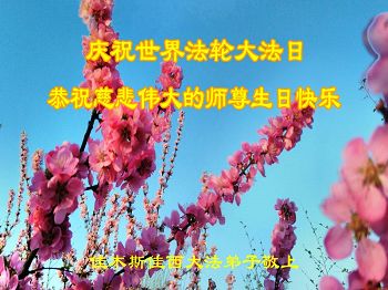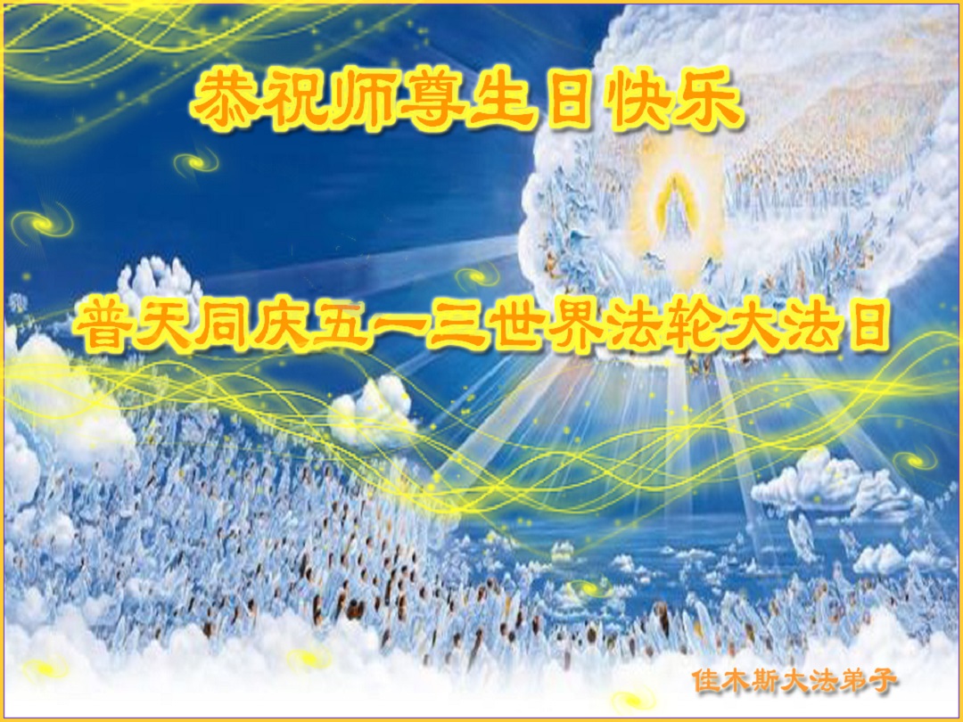 在这普天同庆的日子里,弟子真诚的问候师尊!您辛苦了!弟子感恩师尊的慈悲苦度。在正法的最后时刻,弟子一定要用法衡量自己的言行,修去一切执着,做好三件事,多救人,走好最后的路,圆满随师还。 黑龙江省佳木斯市新四园学法小组全体大法弟子恭祝师尊生日快乐!恭贺世界法轮大法日!